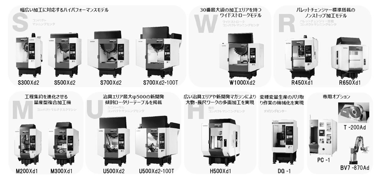 | ・マシニングセンタ ブラザー S700Xd2-100T 700×450×380 1台 ・マシニングセンタ ブラザー U500Xd2-5AX 500×450×380 1台 ・マシニングセンタ ブラザー W1000Xd2 1000×500×380 1台 ・マシニングセンタ ブラザー M300Xd1 300×440×380 1台 ・マシニングセンタ ブラザー R450Xd1 450×320×305 1台 ・マシニングセンタ ブラザー H550Xd1 550×400×400 1台 ・デバリングセンタ ブラザー DG-1 500×300×275 1台 |